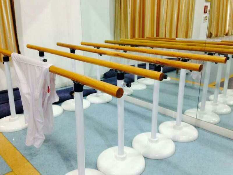 2.固定式舞蹈把杆:固定在地面上,对地面要求不高,只要能牢靠固定就可以,可以通过升降杆来调整把杆高度。