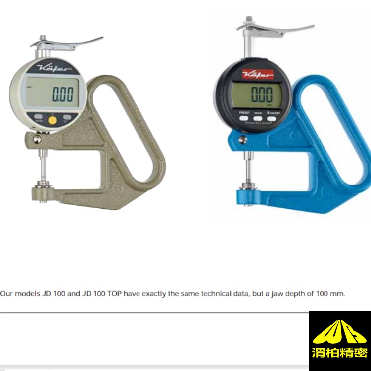 进口KAFER数显测厚仪,卡弗薄膜测厚仪JD 50 TOP钳口深度/50毫米: