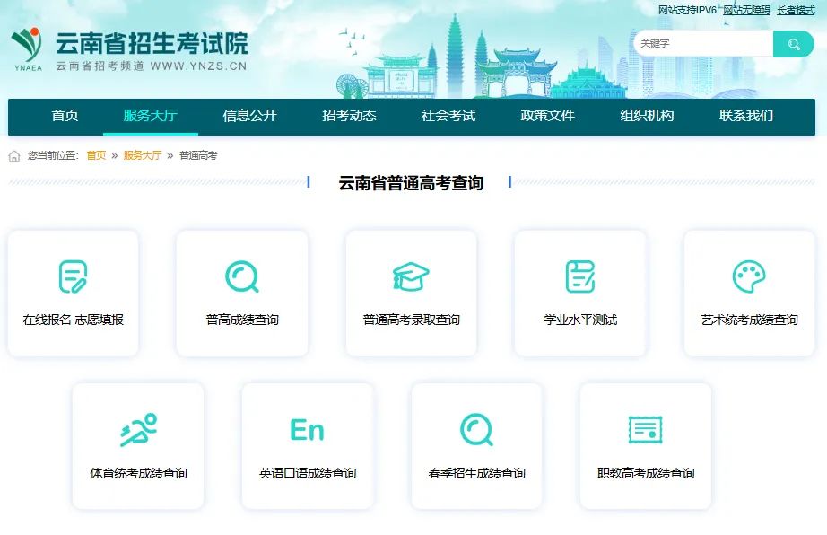 2025年云南高考成绩查询入口www.ynzs.cn/html/service_hall/ptgk.html