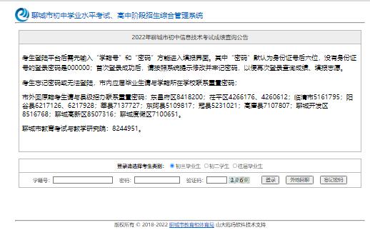 2022聊城市初中信息技术考试成绩查询入口61.133.116.13考生登陆...