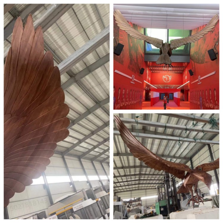 随着雕塑行业的不断发展,各种创新也出现了,除了材质的创新、造型的创新、雕塑也和光电结合了,会动对发光的动物雕塑就是一种创新,我厂塑景雕塑制作的大雕雕塑头和翅膀是可以动的、而且也可发声。