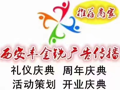 西安丰金瑞广告公司为企业提供各种庆典活动策划方案,为企业宣传推广知名度,礼仪庆典活动场地布置,舞台搭建,灯光音响,背景板,喷绘,地毯,烟花,皇家礼炮,启动球,基石,拱门,气球,条幅,庆典用花,摄影摄像,签到台,指示牌,活动所需用品洋洋俱全,诚信经营,希望广大客户可以选择我们,一次合作,终生朋友