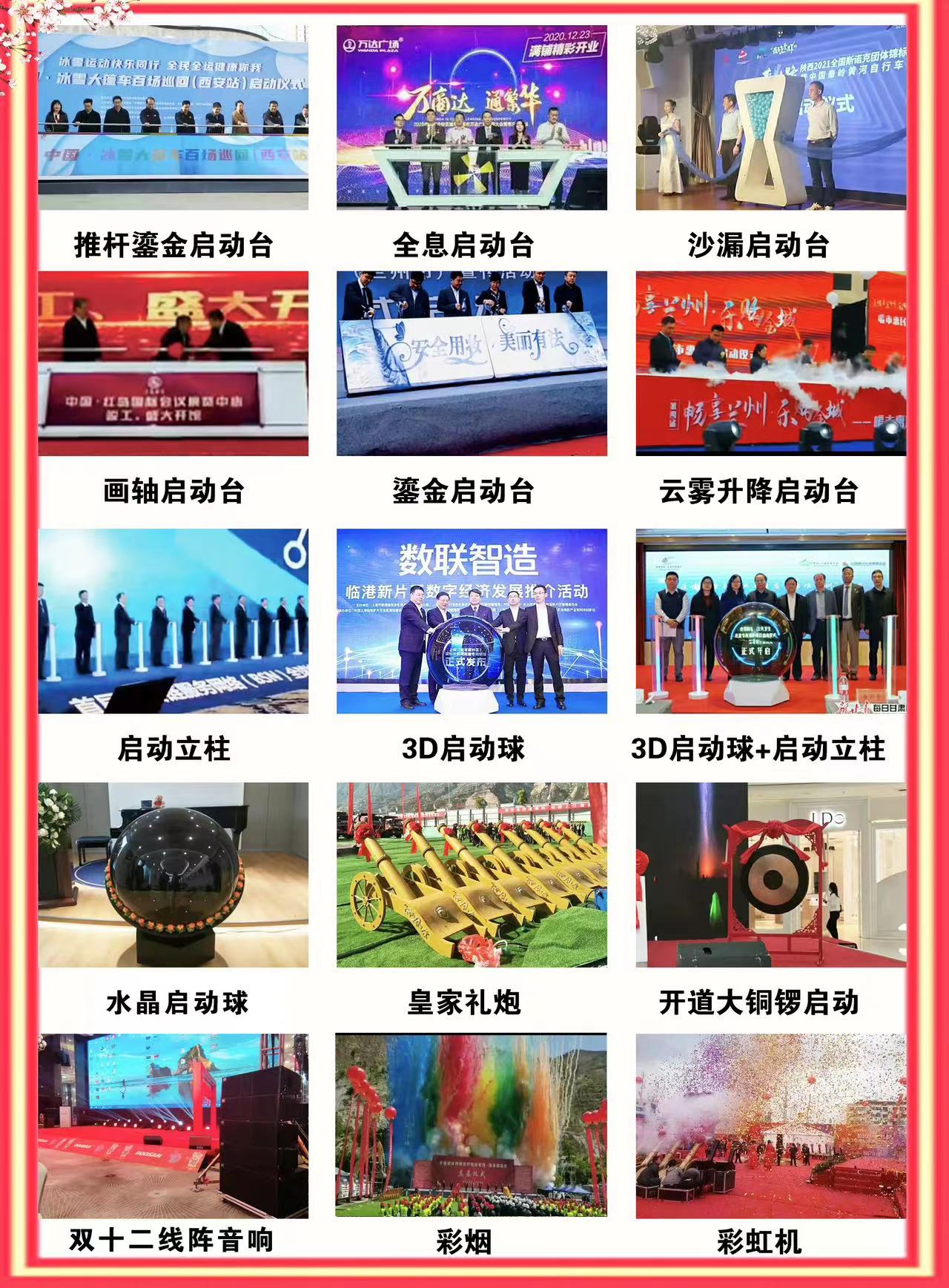 启动道具服务范围:开业仪式,奠基仪式,封顶仪式,开机仪式,庆典活动,开业活动,新品发布,签约仪式,启动仪式等各类庆典活动